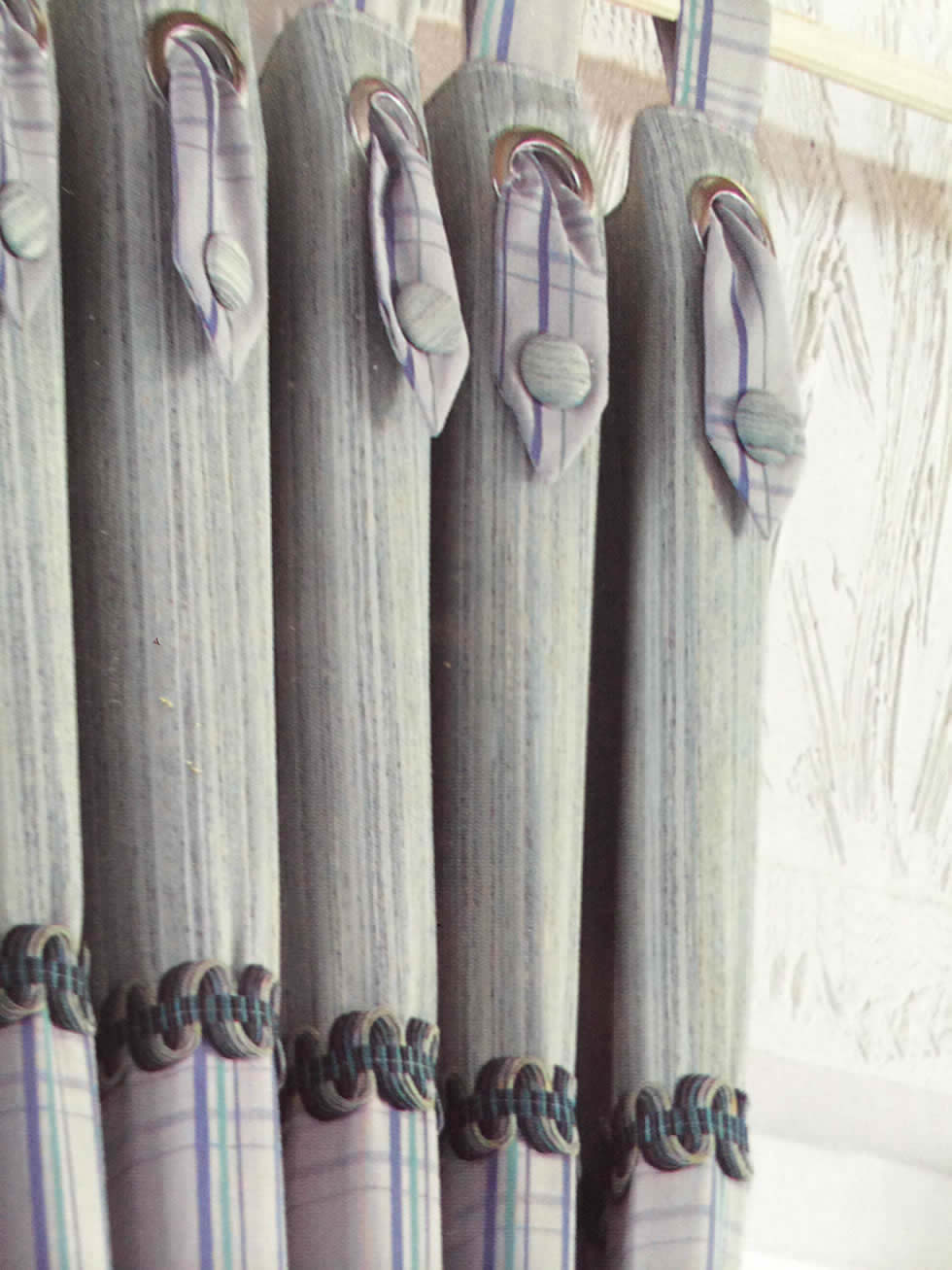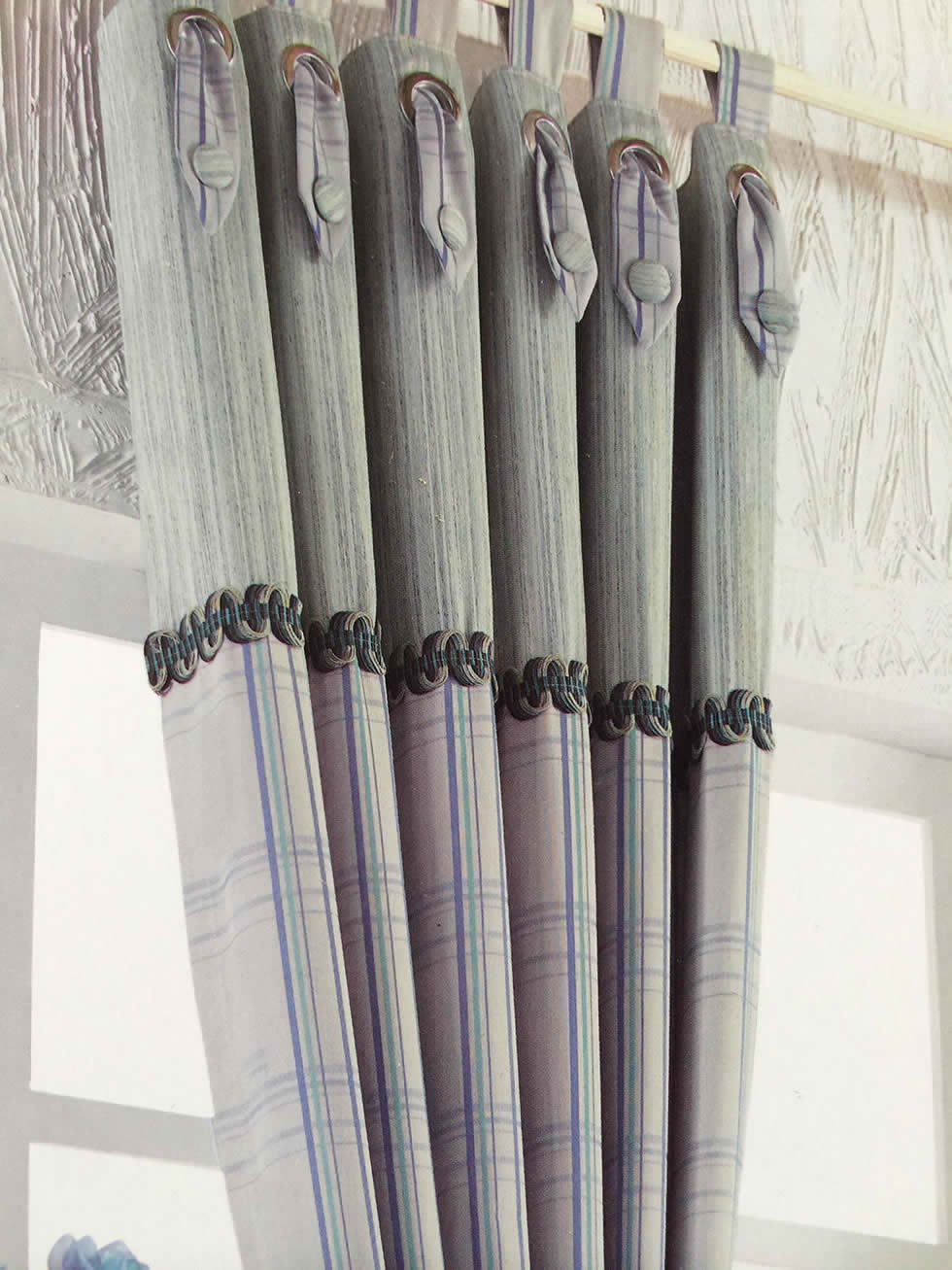 低调环保 奢而不哗 ——质朴、沉稳是各种生活态度的根本基调。棉麻质感厚重,纹理清晰,持久而耐折,折射家的温馨和那种仿佛可以触摸的厚重感。 品牌: 凡思亚布艺 颜色分类:灰蓝色 绿色 主布:DA-2 配布: DA-11 纱:CD-42 适用对象: 飘窗 八角窗 凸窗 落地窗 平面窗 拐角窗 弧型窗 其他/other 遮光功能: 装饰+半遮光 原料成分: 棉麻 图案: 条纹 其他/other 价格构成: 1套米含2米布料、1米轨道、配件、辅料、测量、加工、送货安装费用